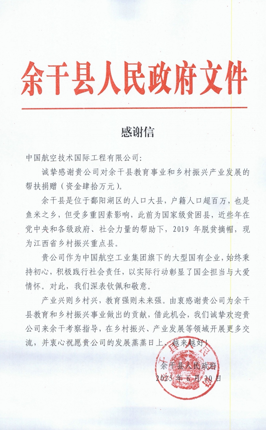 近日,在中国出口信用保险公司(以下简称“中国信保”)的积极推动与协调下,我司向江西余干县小学改造项目捐赠爱心款物,为当地教育事业发展注入温暖力量。中国信保特代表余干县政府向我司转达诚挚谢意,高度肯定此次善举对乡村教育振兴的重要意义。